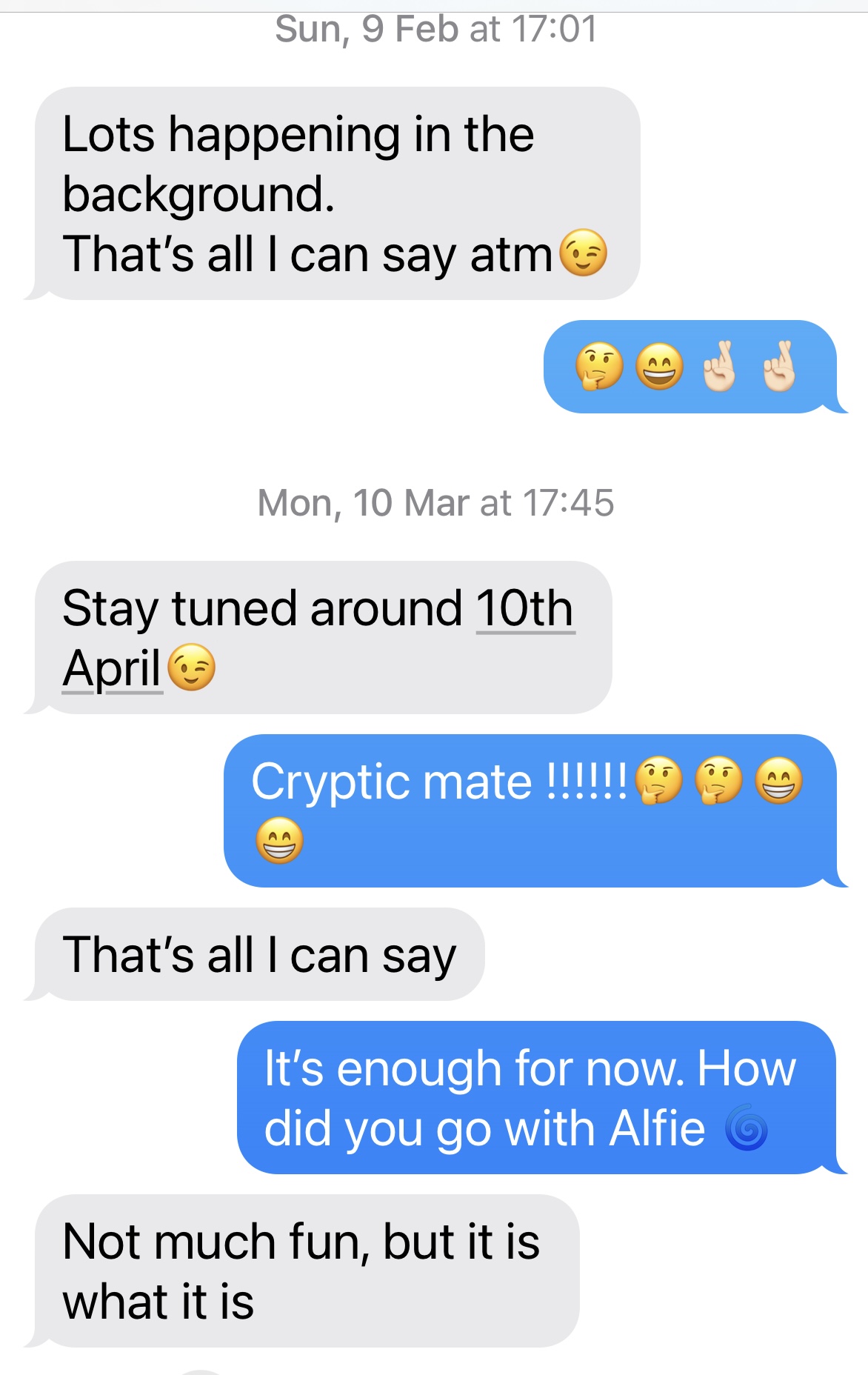 The actual messageIt was āaroundā the 10th. Donāt be disappointed if not tomorrow. We are at the pointy end of this shitshow.