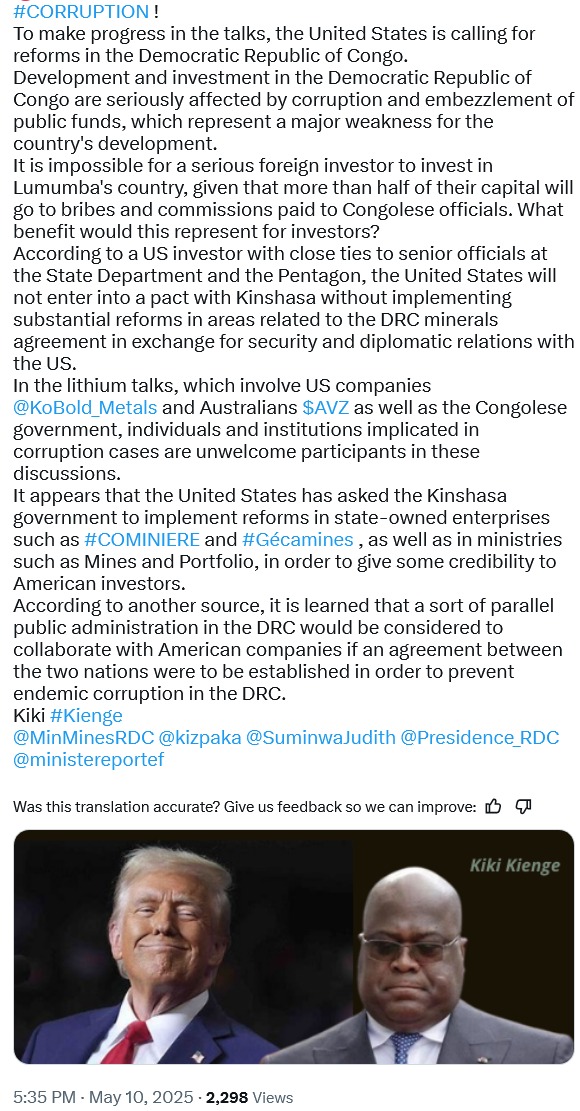 My worst fears of late were that kobold had even approached avz, and got some kind of agreement, before the speculated usa discussions with drc...From the day Trump championed our cause it was clear the mineral/security deal was contingent on no Comminere or Chinese involvement in Manono(RD).