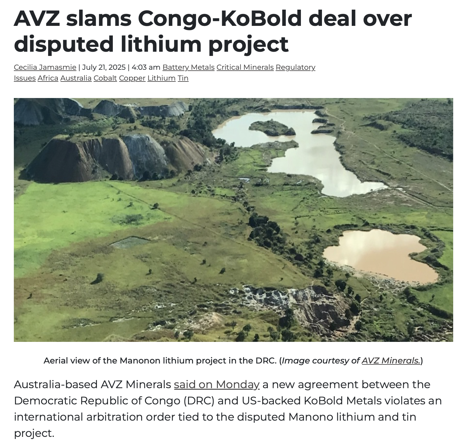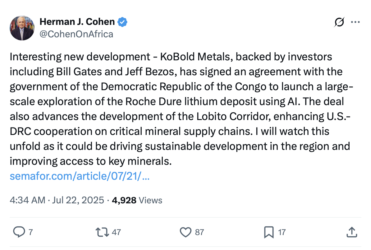 On 17 July 2025, it inked a deal with the DRC for a range of items, including the acquisition and exploitation of the southern part of Manono (RD), and exploration rights to large swathes of prospective territory. It signed this agreement with the DRC, because it was clearly getting a good commercial deal...way more than just RD alone. Doubtless, the deal also came with a number of sweeteners and cost-offsets for KoBold, which AVZ could not possibly counter.