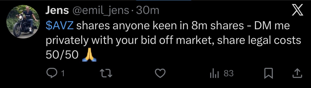 Concerning now Jen’s is trying to sell his 8m shares off the market… With his track record predicting where this is going I'd say it's a positive sign. Time will tell.