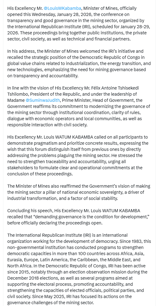 Link: https://x.com/MinMinesRDC/status/2016100648274502077?s=20