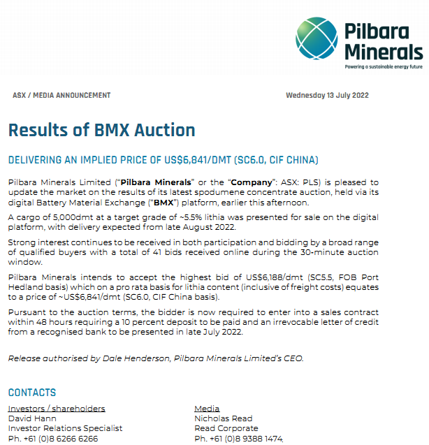Imagine if AVZ was in production and had expanded to a 20MT operation, and selling their goods for this price.For those that monitor these things..