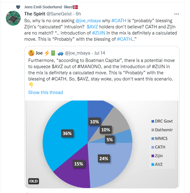 On this subject, replies Master Lukusa, AVZ is only a partner who has a majority share in this project. Also, the JIV (Joint Venture) was never taken over by AVZ, which came and joined. It only applies what is in the Joint-Venture contract which is in particular the control at the level of the company and the distribution of positions.