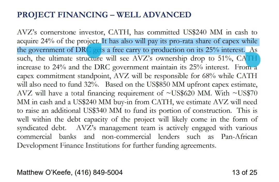 Yes, this is interesting. Maybe the DRC government are changing the way they are doing things. This maybe a sign of things to come as they are revisiting existing mining contacts this may be what they expect of other companies.DRC has free carry on its 25% interest? It is the very first time I heard that DRC's 25% is free carried.