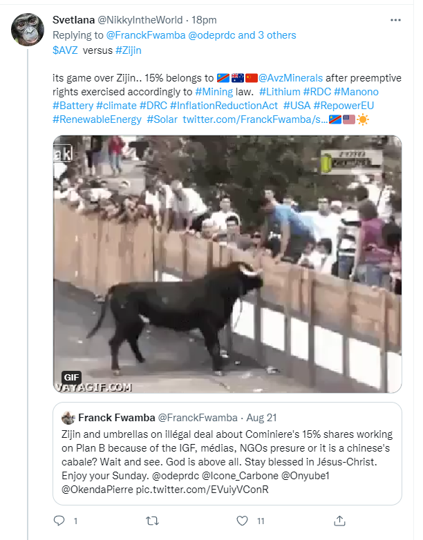 Cruiser said that AVZ could not make an announcement about Zijin without the DRC govt's permission. There is no such obligation because arbitration has nothing to do with the DRC govt. It's not a DRC sponsored process, and outside its jurisdiction.