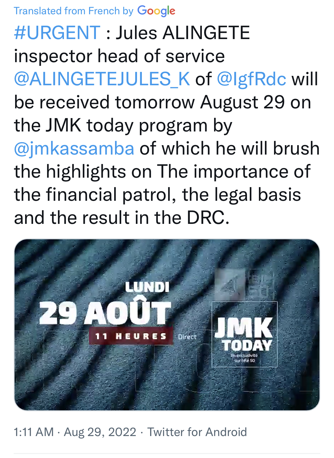 For anyone interested in listening, Jules Alingete is being interviewed tonight - AEST 9:00pm (I think).