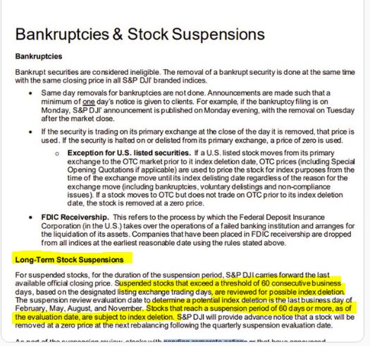 Oh snap!? Nice share! Mind is now blown. Work today has just ceased.We can drop out if we are in suspension due to the review criteria for long term suspended stocks