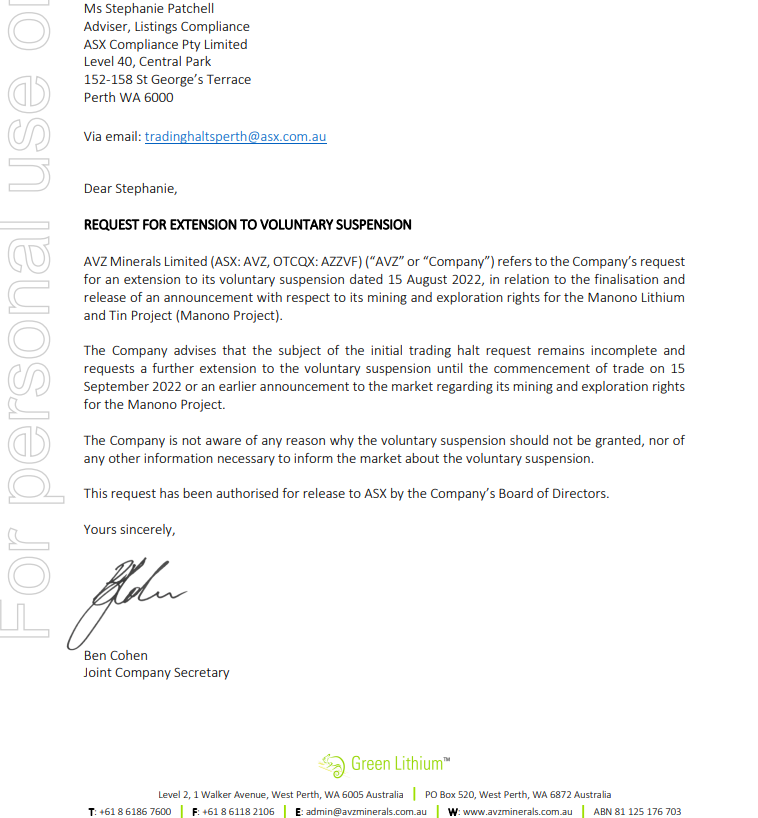 They even dropped the ‘negotiations are progressing well’ from the first suspension extensionI must admit, the lack of ANY information directly from AVZ is a little frustrating. If it’s only the surface rights etc that’s the issue does it really take 3+ months for just this issue?