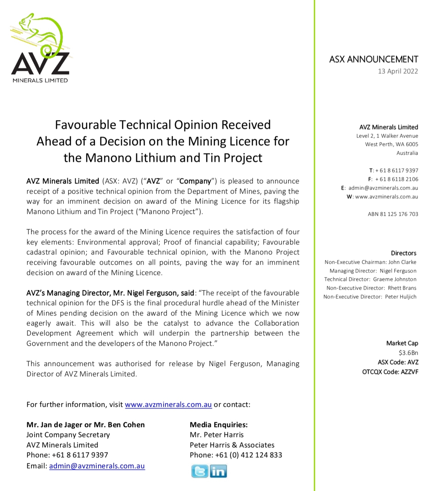 You would hope that both of these matters were looked at by the mining ministry before giving their favourable opinion in April and the mining minister issuing the decree in May. If AVZ had been told by the DRC government that everything was okay after these claims were made then it would seem they were reasonable in thinking that the claims were without merit and wouldn't have a material effect on the share price again in my opinion.