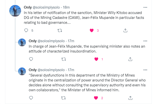 "I believe in a larger oil industry in the DRC, by the desire to integrate the leaders of the sector", we read.