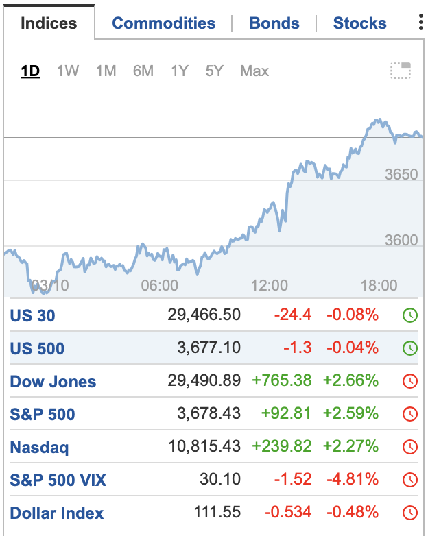Is the Dow pre-market a couple of % in the green or am I still asleep and dreaming?