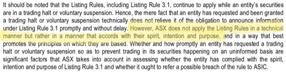 It reads like it is at the ASX's discretion whether to enforce regardless of anyone's claims but you do you. Personally I think companies should have to disclose immediately even in suspension.