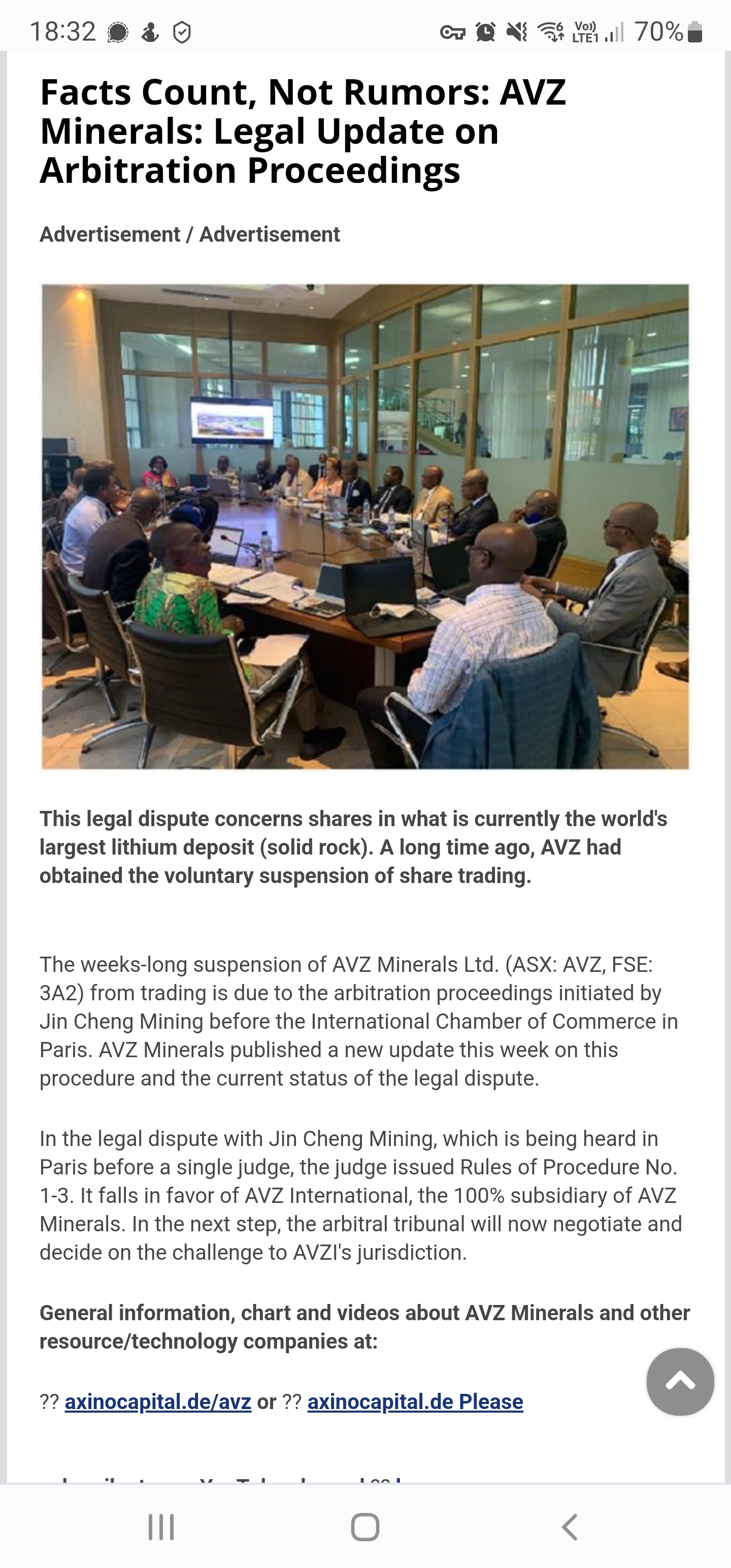 Anzeige / WerbungBei diesem Rechtsstreit geht es um Anteile an der derzeit weltgrößten Lithium-Lagerstätte (Festgestein). AVZ hatte schon vor längerer Zeit daraufhin die freiwillige Aussetzung des Aktienhandelswww.finanznachrichten.de