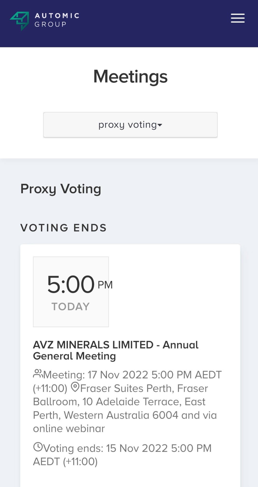 Voting for resolutions ends today and if you haven't already you can do it online here. https://investor.automic.com.au/#/meeting?t=a697a3ee-09f6-4089-8d5a-775f08d83676