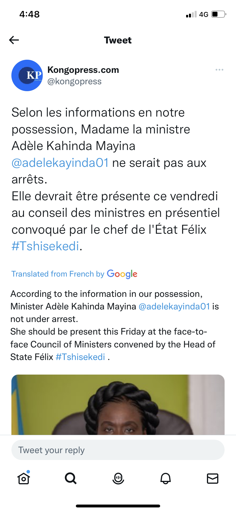 If she had it would have been covered by every big media outlet in the DRC!