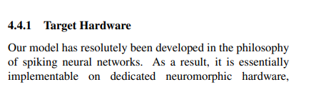 "Consequently, we believe that it rather fits to dedicated hardware for stateless models with sparse activations quantized on 1 bit. We therefore consider that Brainchip’s Akida chip [35] is a good fit."