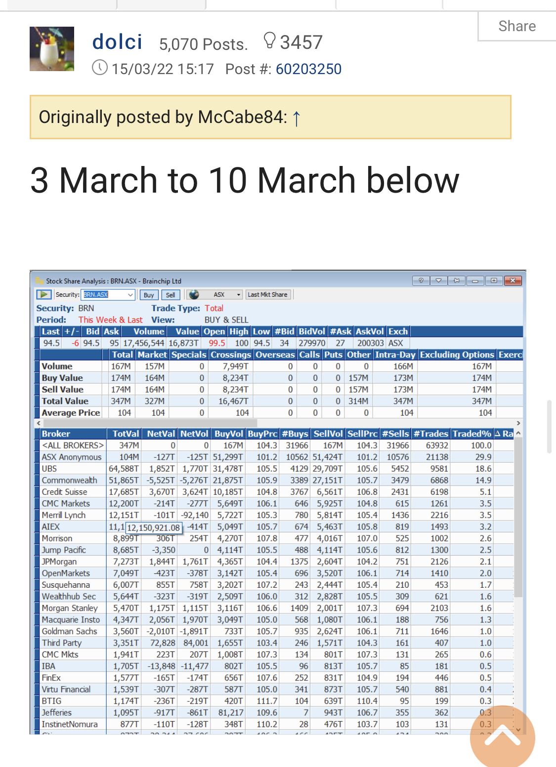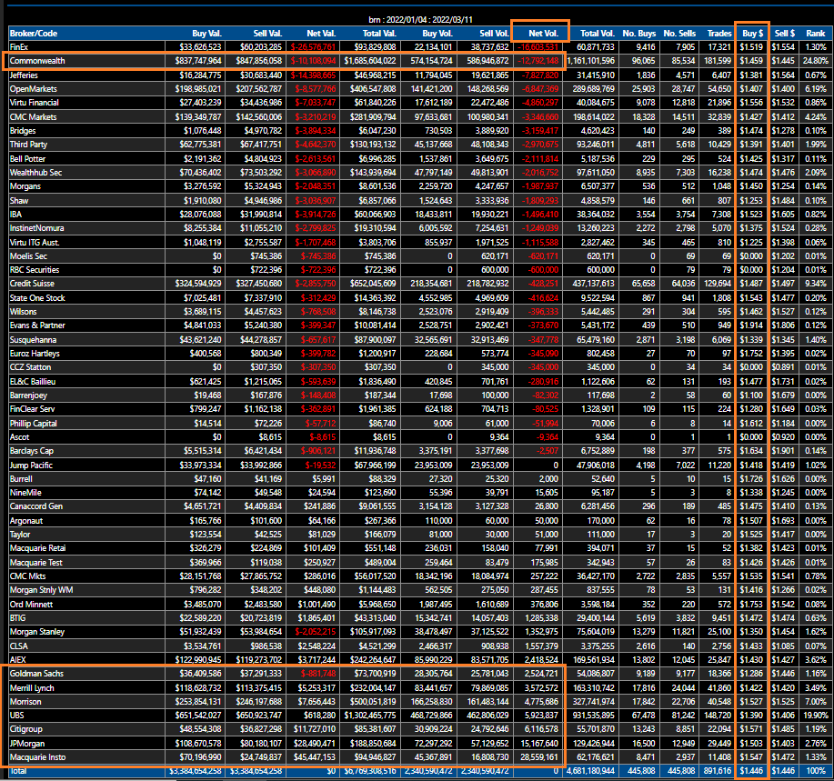 Regarding to the broker data, when the RSI reached 90, I had every reason to sell a big portion but I didn't, because of what I see in the broker data. the Data shows even if you look at the data from March 2021, the majority of insto are starting to have paper losses as their average buy price was around $1 from 12/03/2021 to 11/03/2022.