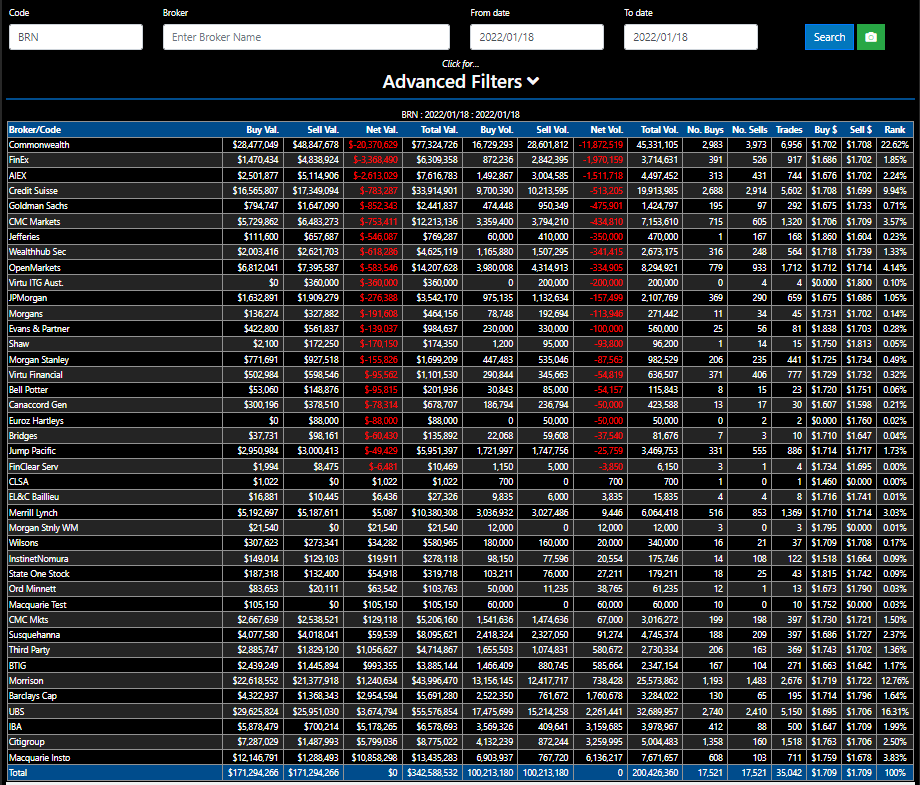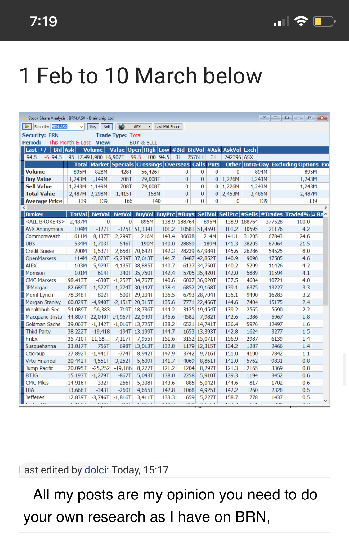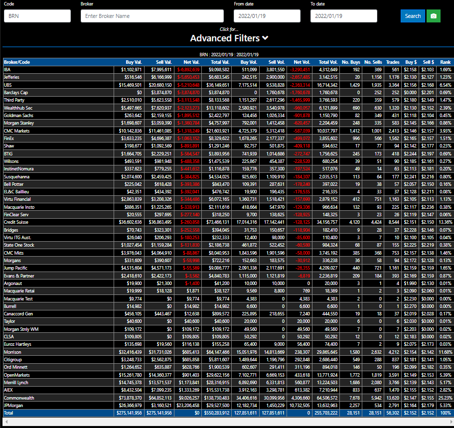 Thankyou for the broker data, and your comments on such.