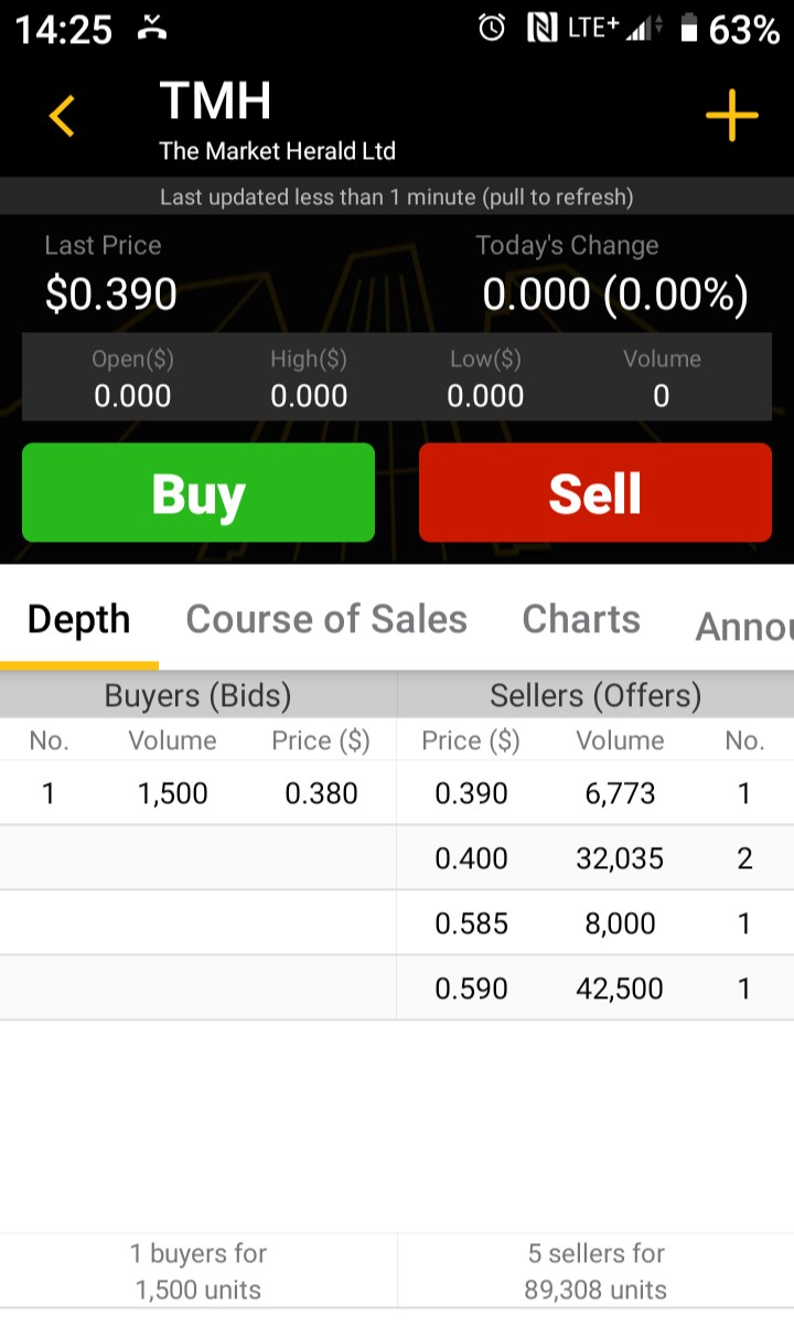 Someone has put an order in, for 1500 TMH shares at 38 cents.