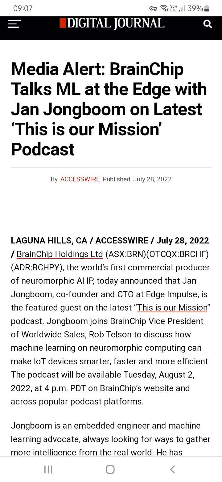 With AKIDA MKII coming soonBrainchip Holdings Ltd, the world's first commercial producer of neuromorphic AI IP.