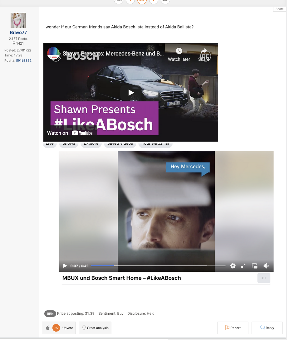 I'm just going to re-awaken this one because, to me it looked suspiciously like Mercedes and Bosch could have something going on together in the smart home department as well.