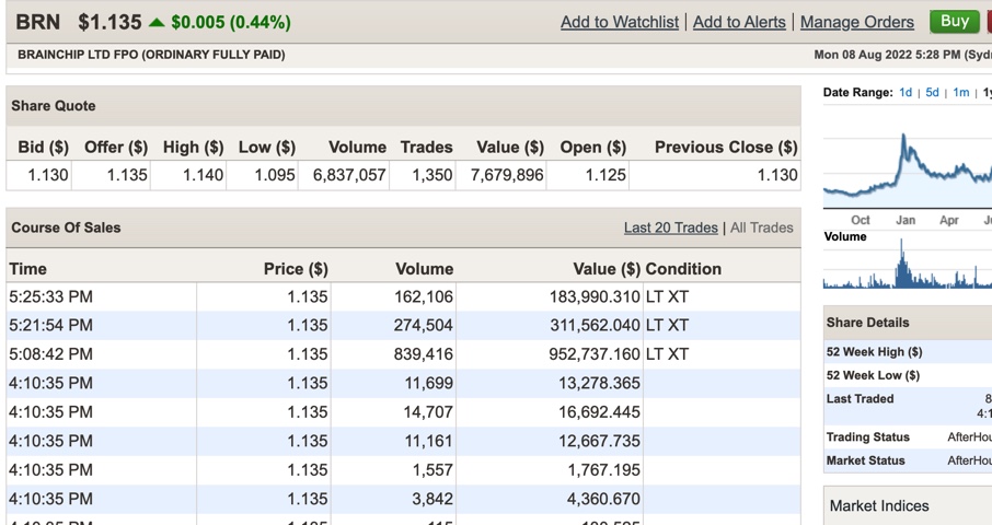 Mercedes-Benz uses the capabilities of the chip in its Mercedes Vision EQXX. By using the chip in the device, the massive power consumption and the associated emissions from data centers are reduced, which is good for the climate. In addition to the energy efficiency, the latency is significantly lower, the chip learns directly and data security is significantly increased. The latter succeeds because the chip does not require an internet connection. In contrast to competing products, a CPU is also not required. Most recently, ARM entered BrainChip's partnership program. This partnership could be a big hit, because ARM processors can be found in almost all cell phones, tablets and other IoT devices. It can be assumed that ARM will put the Akida chip through its paces. Should ARM be convinced and acquire licenses from BrainChip, it would be a quantum leap for the Australian company.