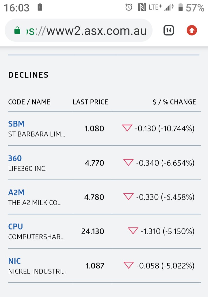 Today we should be recorded in the 4th spot of the Top 5 Declines.