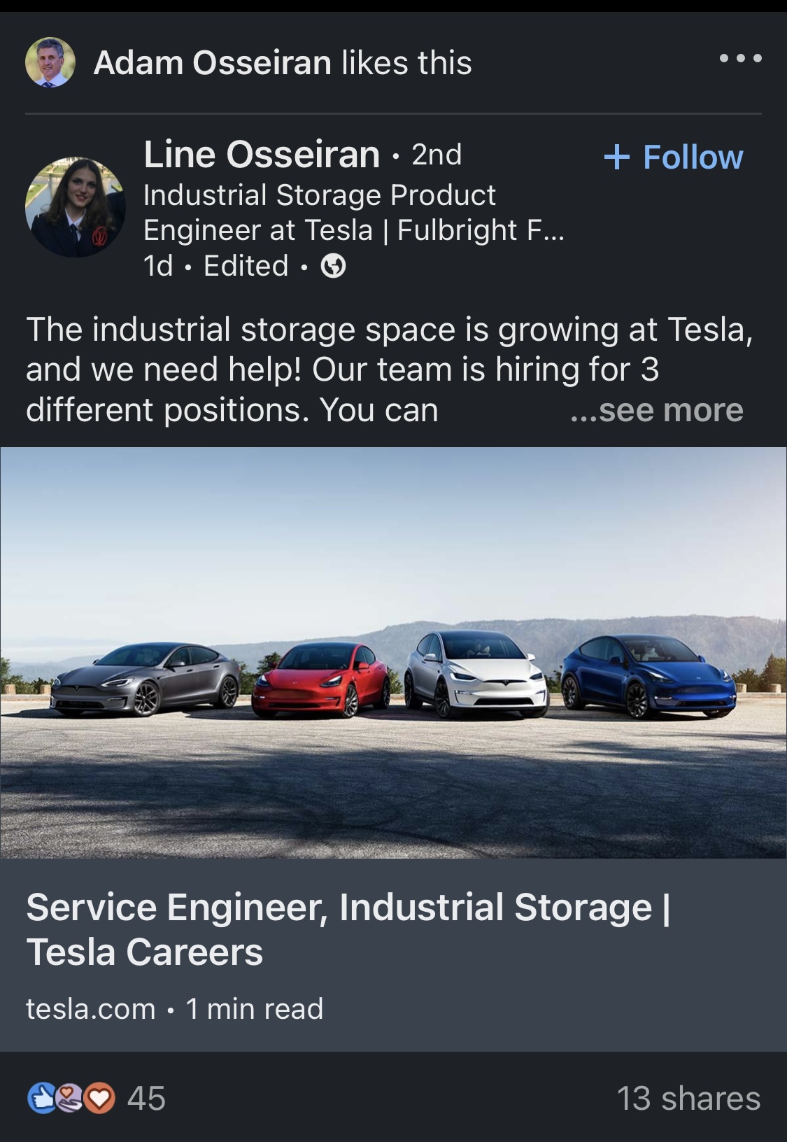 Industrial storage.....is that another name for a car stacker?Adam Osseirans daughter?? As if she hasn’t put the word in to Tesla, complimentary board given to them to play around with no doubt. View attachment 14005