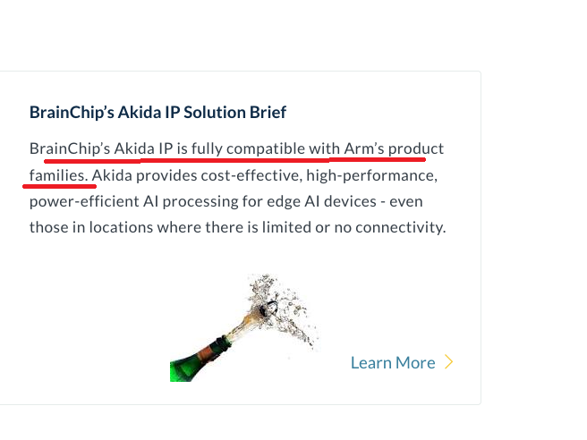 Just before you get sloshed 🍾 @Bravo, I don't know about this. When I look at ARM's partnership catalogue, BRN isn't listed as a partner in the Cortex-A series, Mali GPU's and Cortex-X isn't even listed under ARM IP. We are listed as a partner in the Industry and Technology section under Mobiles but not sure that means Mobile Phones or just a mobile connection to the cloud. We are also listed under Cortex-M.