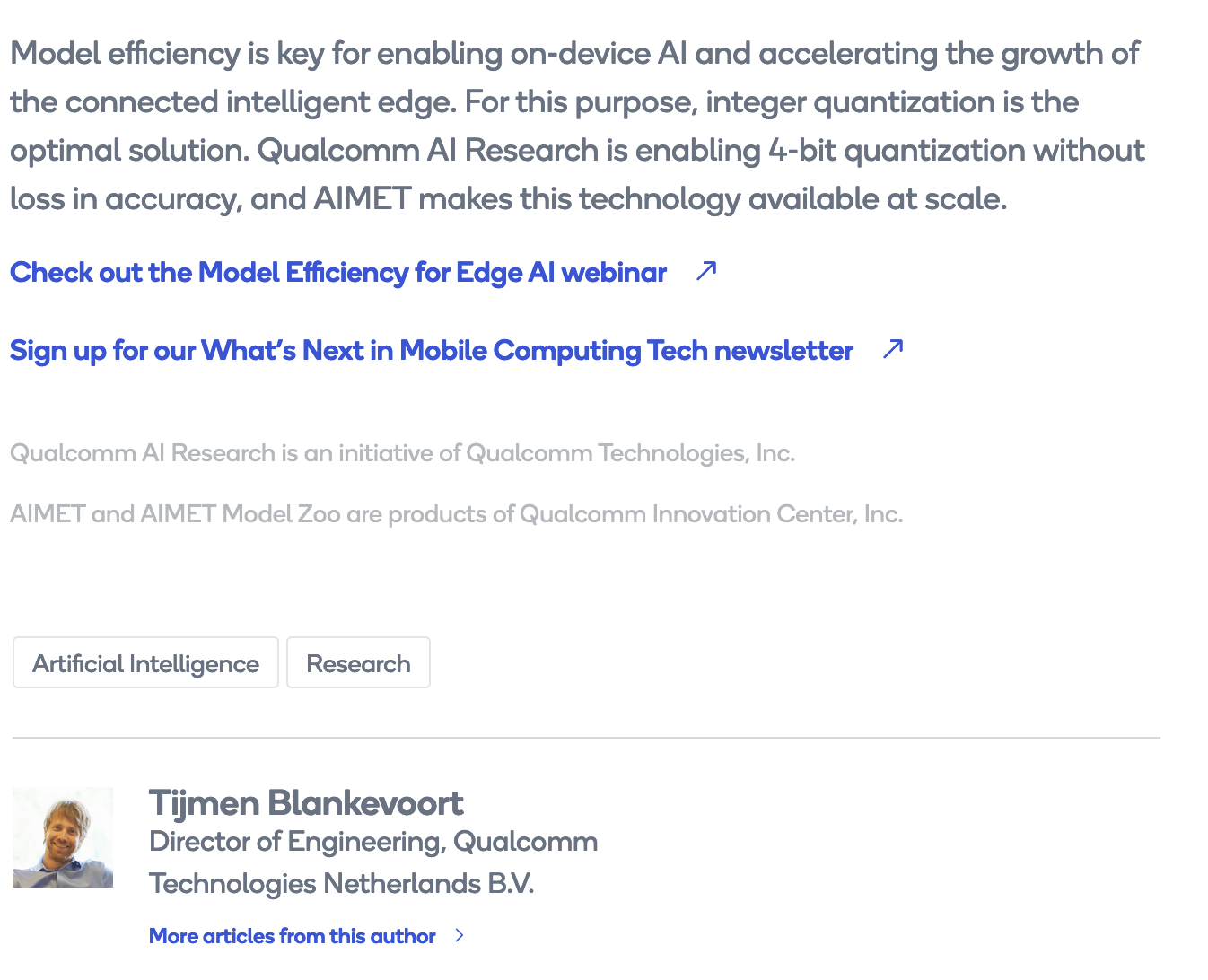 I was re-reading back through this Qualcomm blog on quanitisation (link below). One of the authors is Timjen Blankevoort (Director of Engineering Technologies Netherlands).
