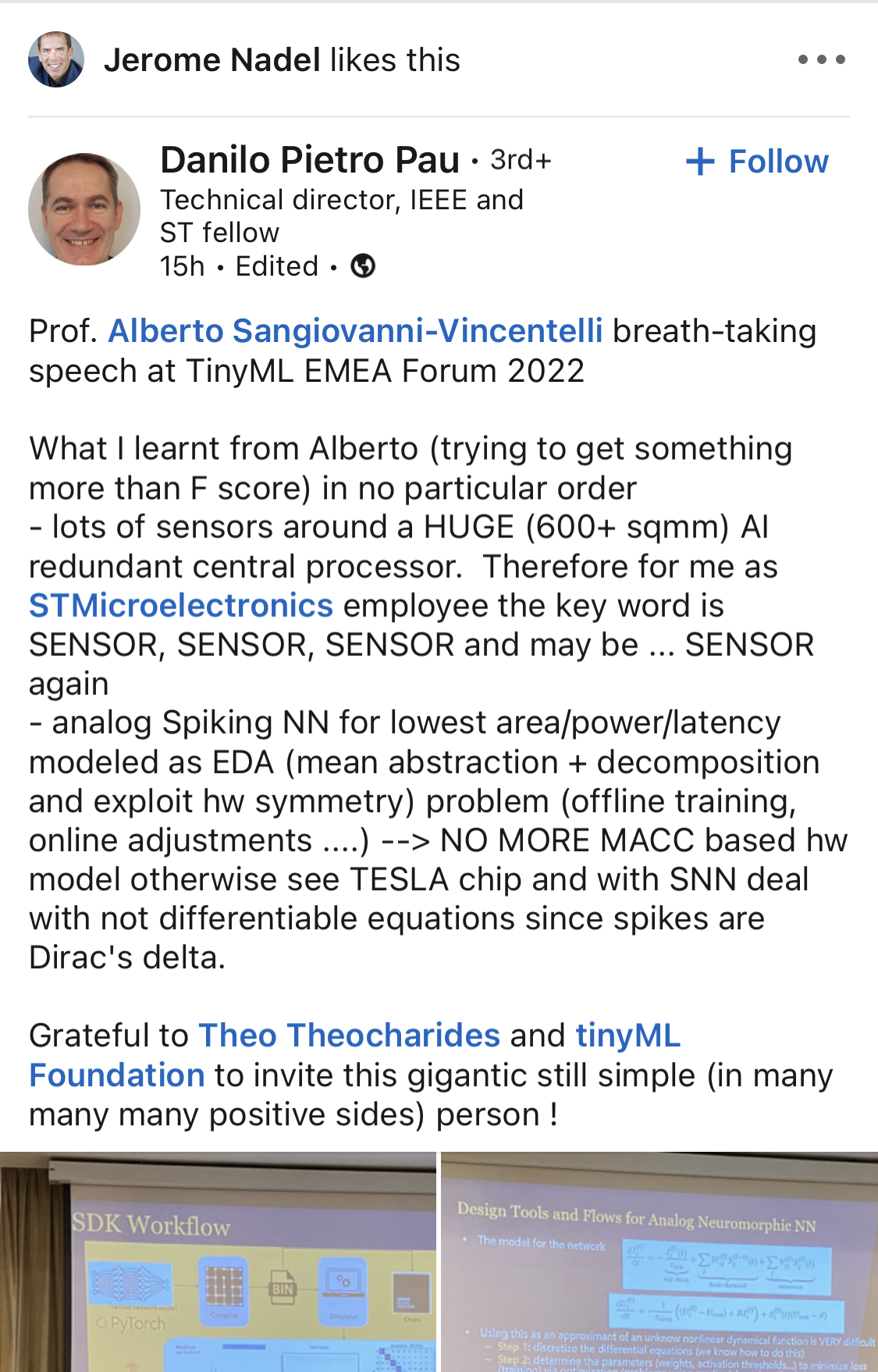 A little birdie told me that it is a big deal for this Professor to come out of the closet in favour of SNN technology, supporting the shifting of compute to the Edge by making every sensor smart and criticising the old school 500 watt guzzling Dojo built by Tesla as the redundant past dinosaur type thinking that has no place in the future.Not sure what this is about but Jeremy liked it and it has Tesla, SNN and spikes in the same sentence?