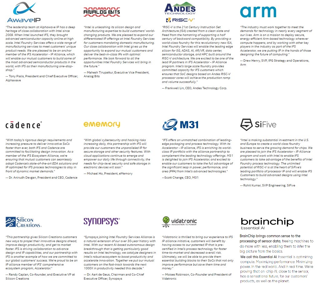 We provide hardware and software tech enablement though early access to product development kits, fabrication, packaging, and testing, plus access to Intel subject-matter experts supporting the platform designs. We relish this bi-directional communication with our DIB partners.