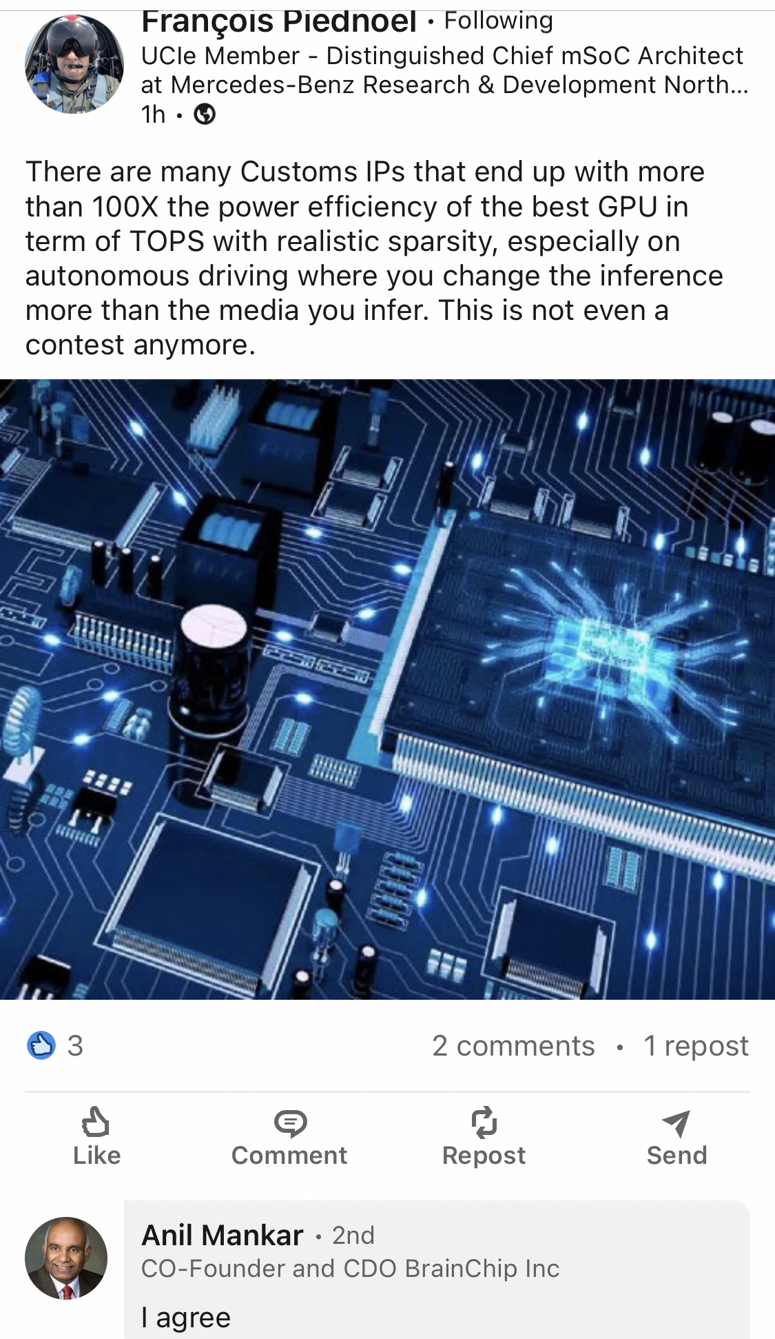 While Mike Davies is trying to talk the talk Brainchip and AKIDA are actually walking the walk and as I said earlier increasing the technology lead they have with every single step.