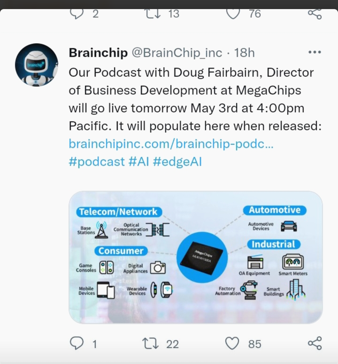 Well can't quite remember the exact percentage but a majority of megachips revenue comes from Nintendo. Surely the collaboration with brainchip had Nintendo in mind.