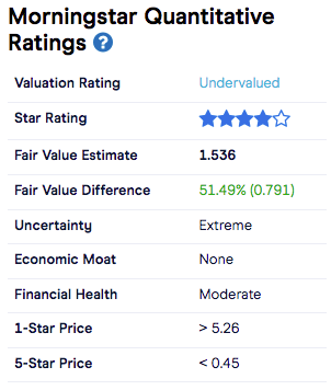 And they have upgraded us to 4I see that Morningstar ratings (for what they are worth) have lifted Brainchip to a Fair Value Estimate of $1.536 which means we are currently trading at less than half of this 'fair value' estimate.