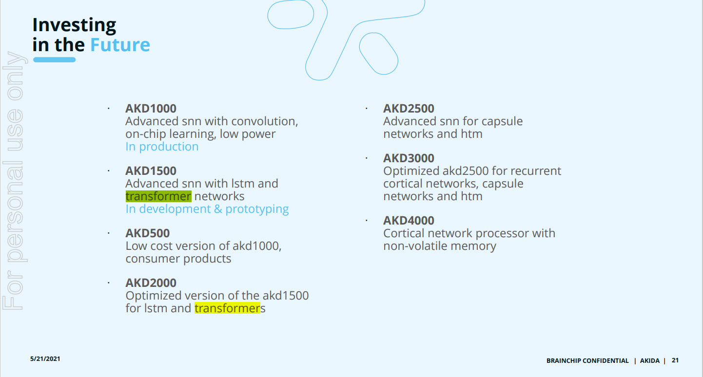 You need to go back to the AGM presentation and comments made during the AGM by Sean Hehir and Peter van der Made and I have no doubt when you do the only chip they could possibly be producing is the AKIDA2000, AKD2000, AKIDA 2.0 which are all one in the same chip but as this shows a final ‘what will it be called’ has not been decided.