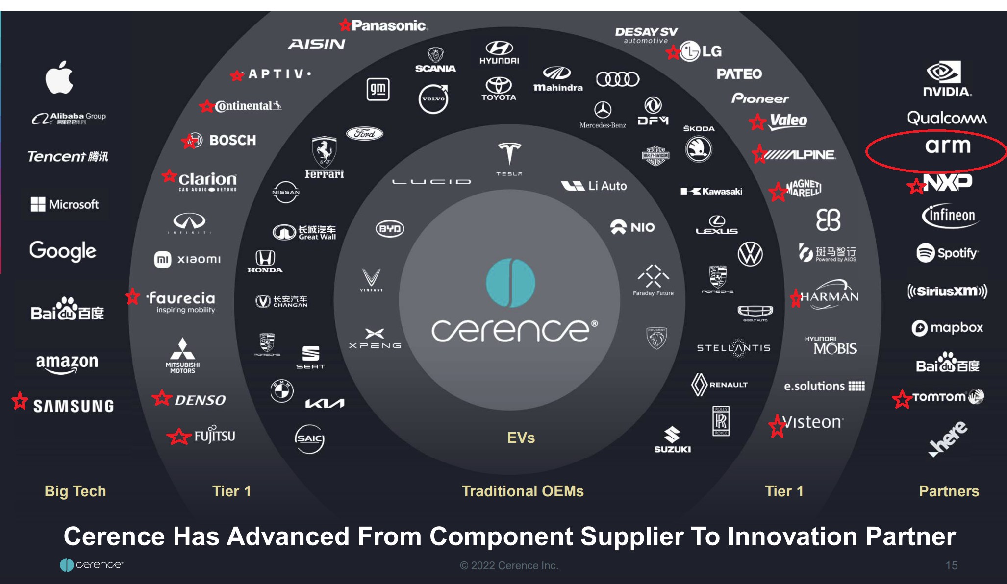 I had a bit of time up my sleeve, so I decided to compare the list of Automotive Human Machine Interface Market Key Players shown in this overview and marked them with a red star on Cerence's chart thingy and check out the result!
