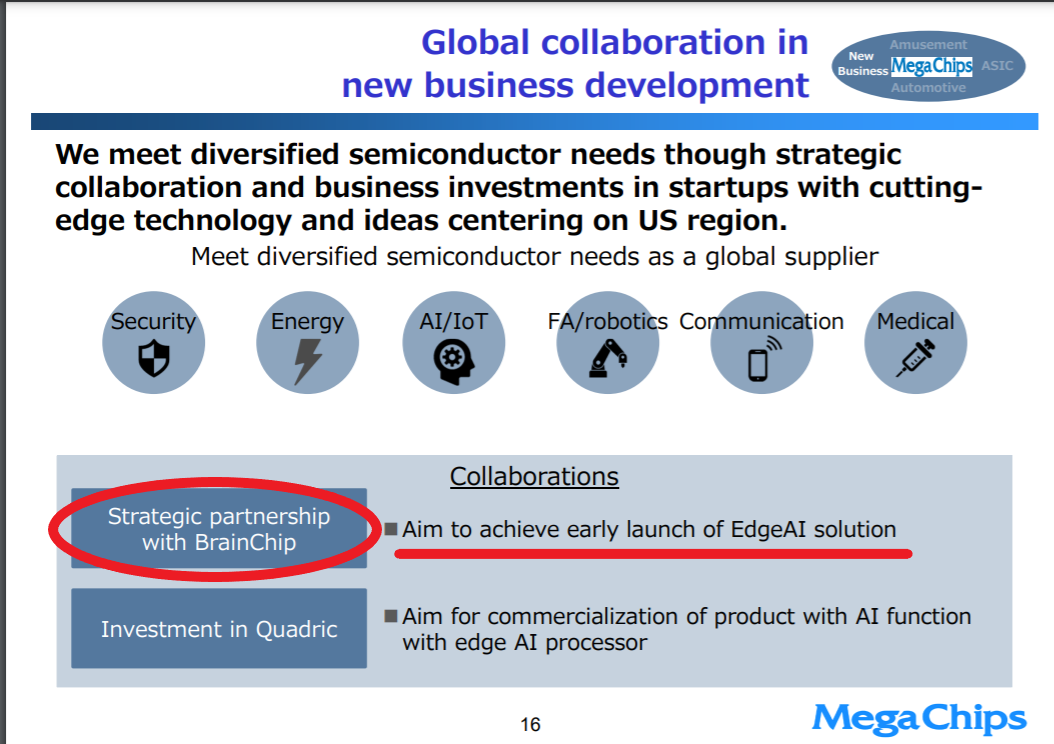 I can't find the megachips US website, the one where it highlights the Brainchip partnership. It seems to me that www.megachips.com has been offline now for at least a few days. It could be in the process of getting revamped and might be one to keep an eye on. Megachip.com defaults to the Japanese Megachips website, at least it does for me.