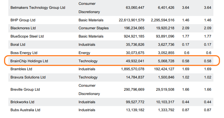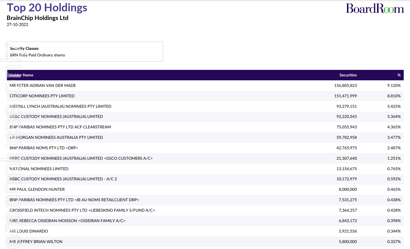 Top 20 Holdings BrainChip Holdings Ltd 27-10-2022