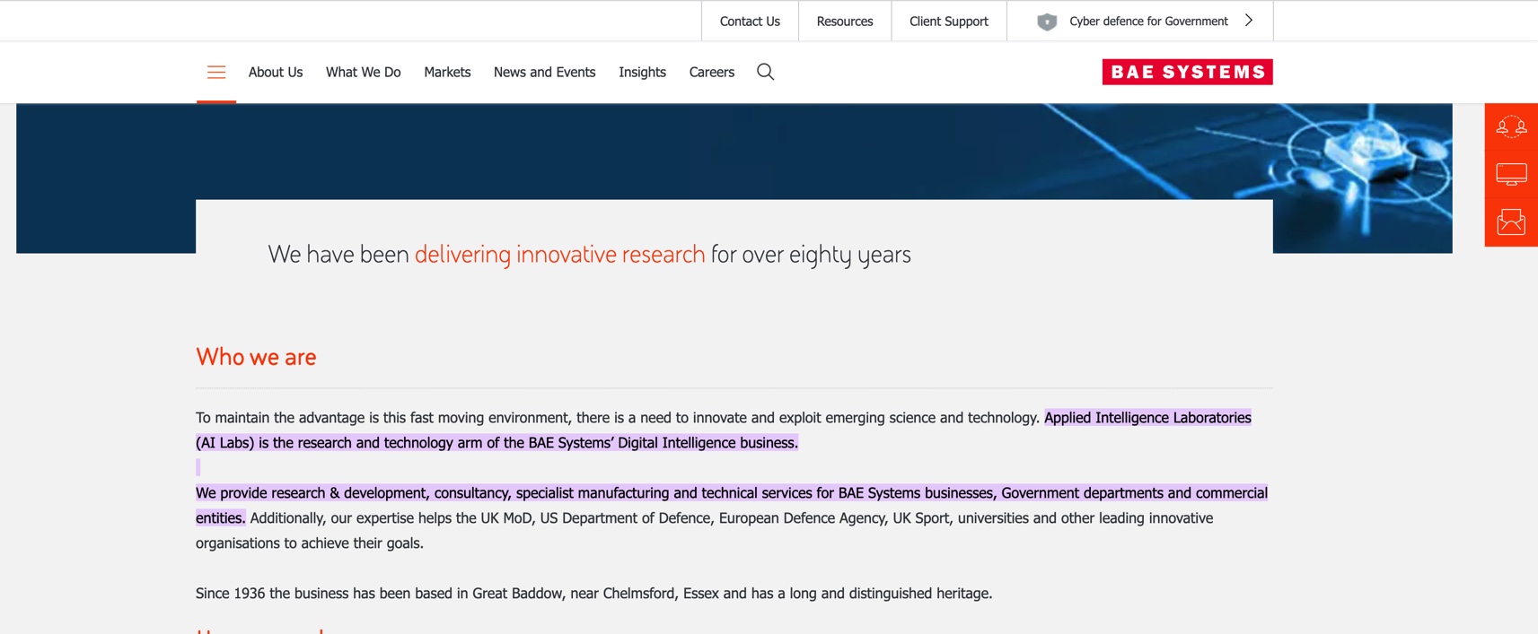 The “AI Labs” we’ve partnered with is not associated with BAE.
