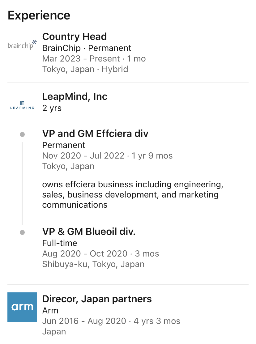 It's amazing how BrainChip attract experience and talented individuals to join BrainChip.