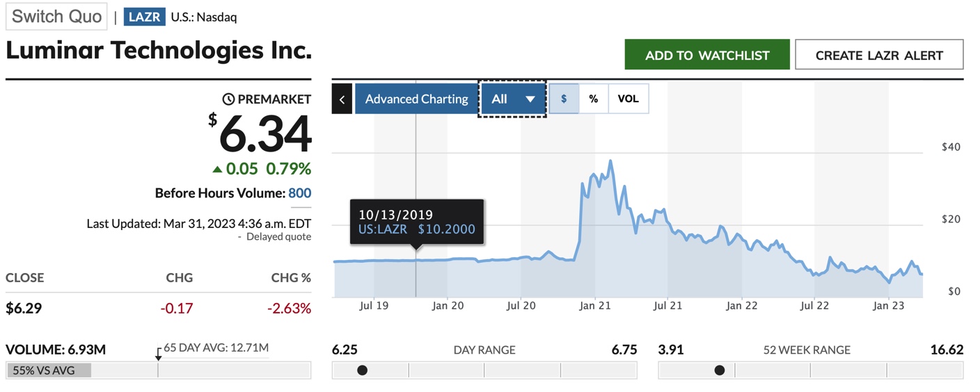 All this good news from Luminar hasn't helped their share price. Back below where they started.