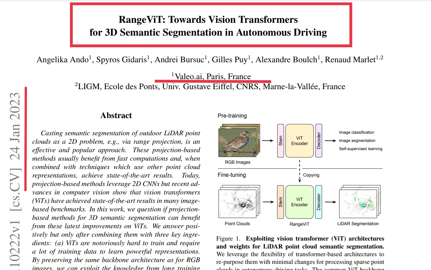 I now just read the team at Valeo AI had a Jan 23 paper accepted for CVPR'23 titled...