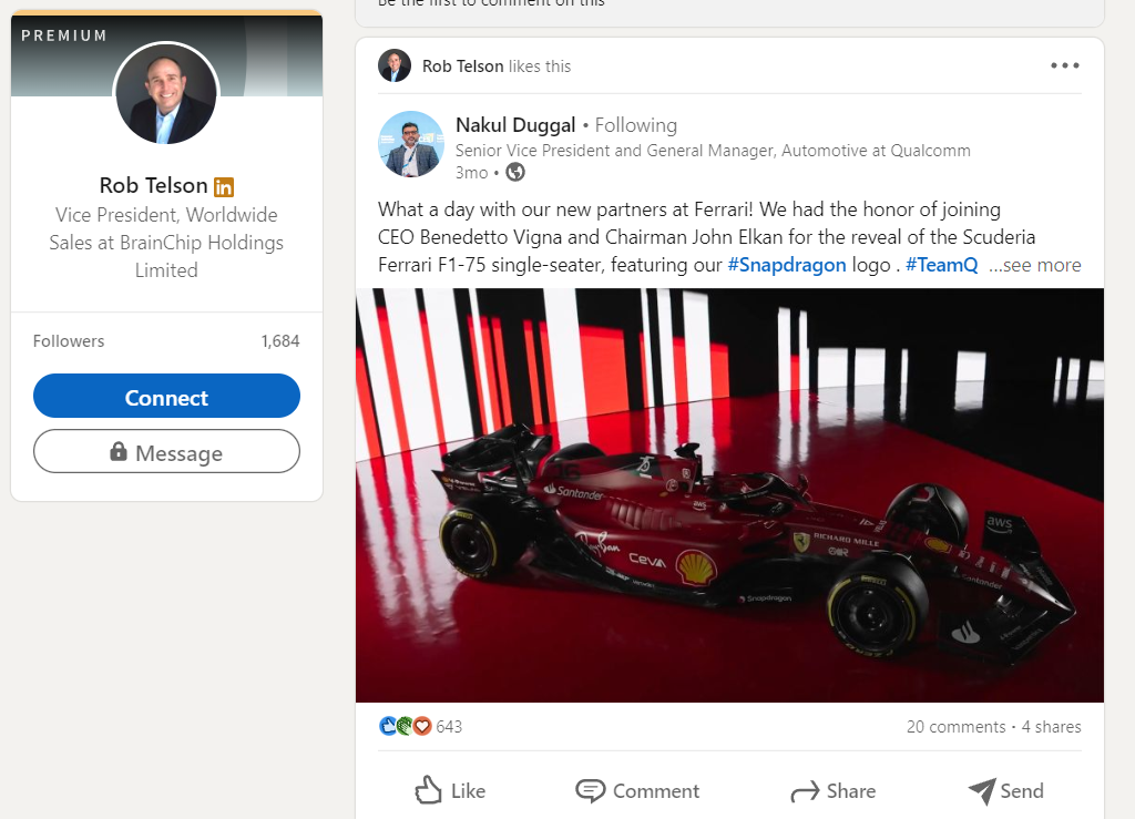 But it did make think of T2M as recalled reading something once that BRN engaged them in the early days for Akida.