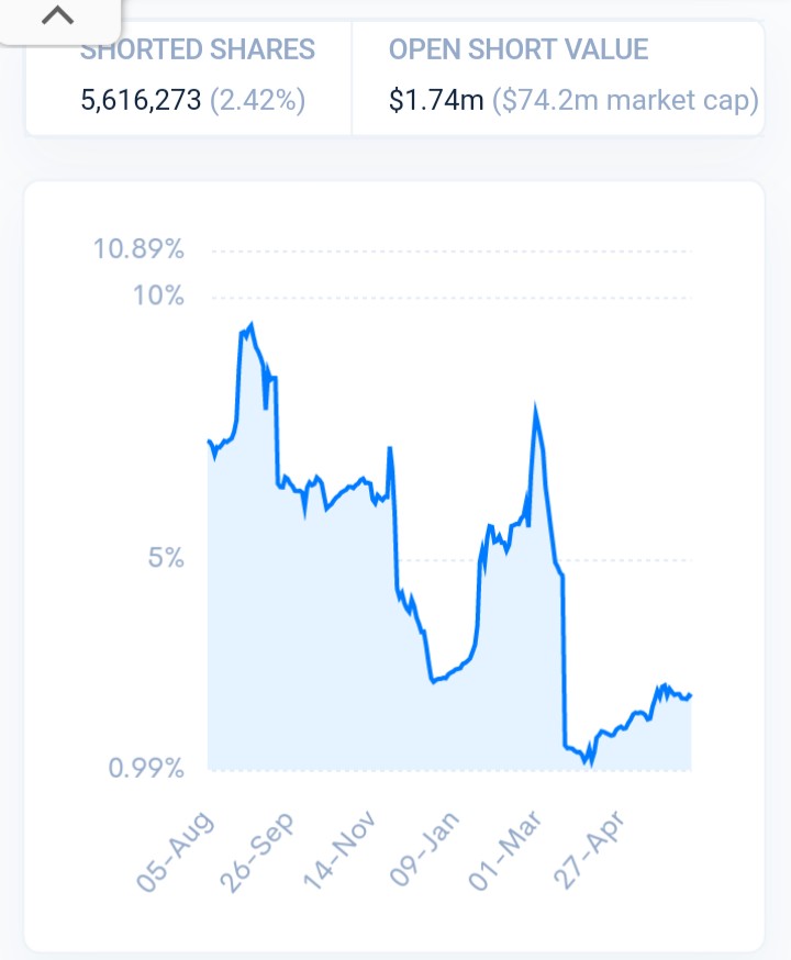 The large dip to almost no shorts in March (I believe) was due to their removal from the ASX300 in the March rebalance.