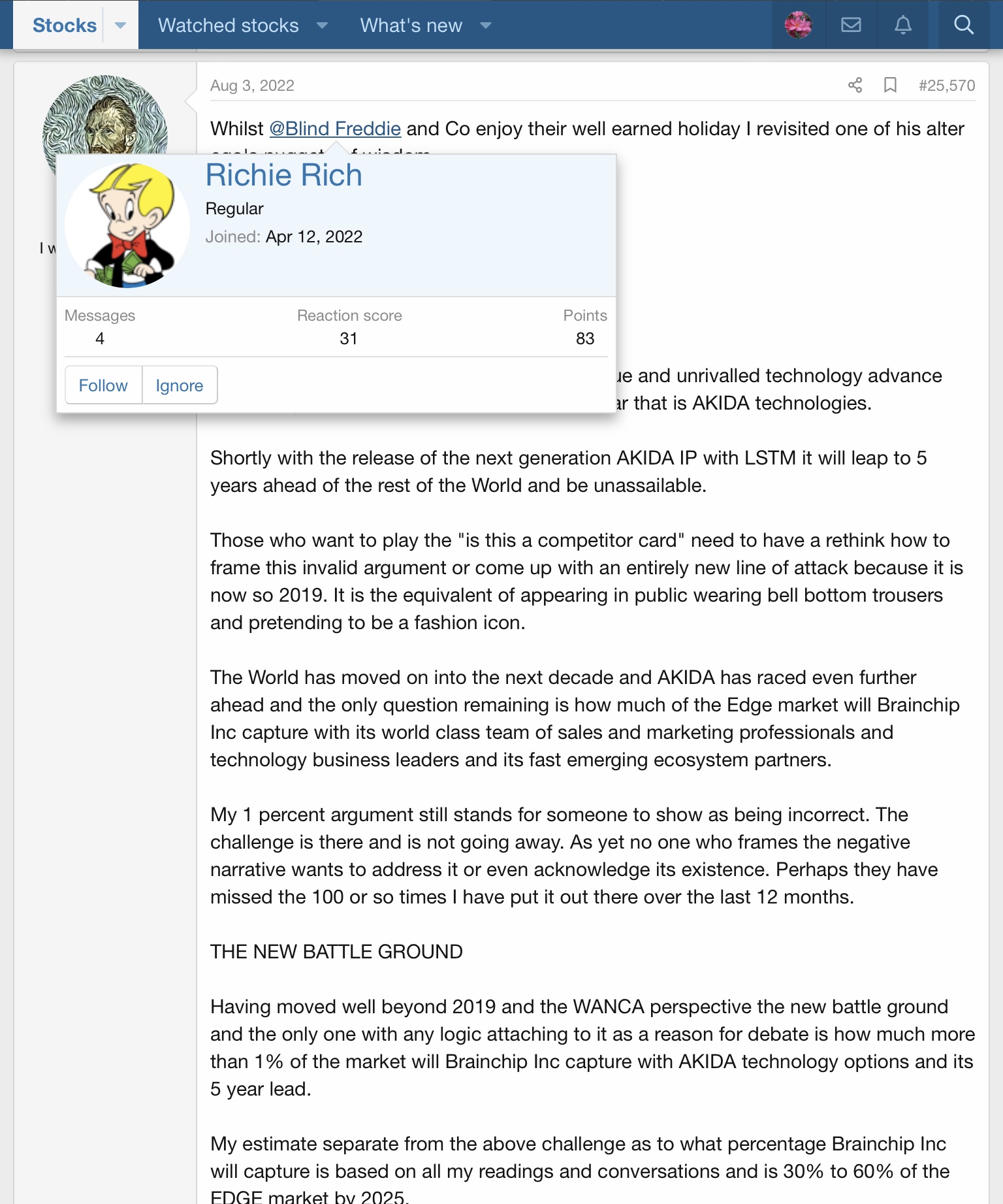 But against the other side of a positive investment allowing a company to go its way to develop with the money of the shareholders, against this other dark purely driven by greed side is each one of us powerless. In one case, I simply don't need to trade or follow. In the other case a covered system of media, forum, hired avatars, bots, favoritism on the ASX on multiple levels takes a position that is unassailable.