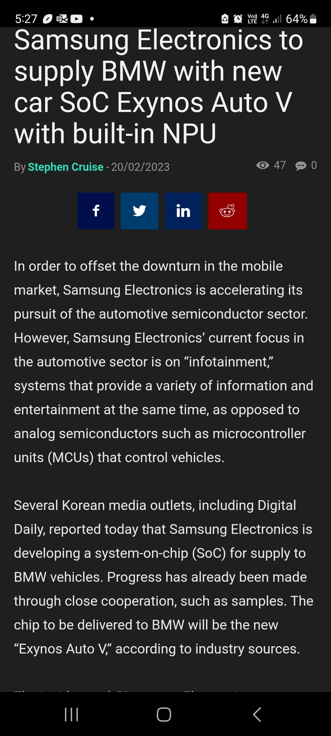 To add further; Exynos has been linked with Hyundai and Volkswagen.