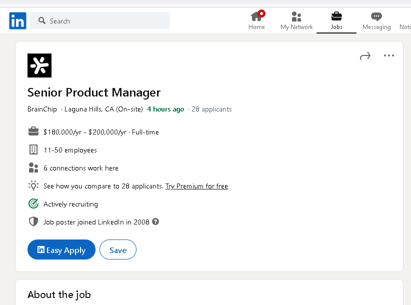 · Partner with business development and technical colleagues to explore product choices that best serve BrainChip in financial success.
