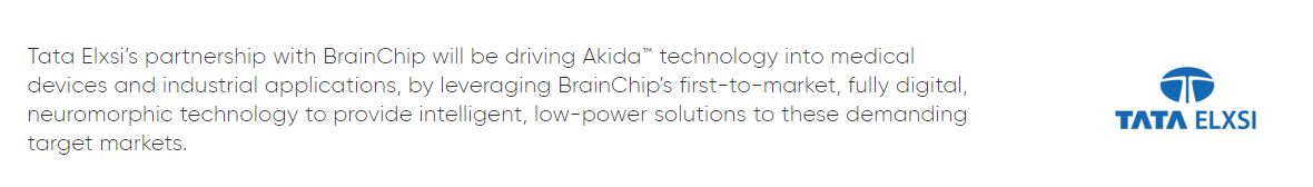 And after this assessment they partnered with Brainchip ... a ringing endorsement from Tata if ever there was one.