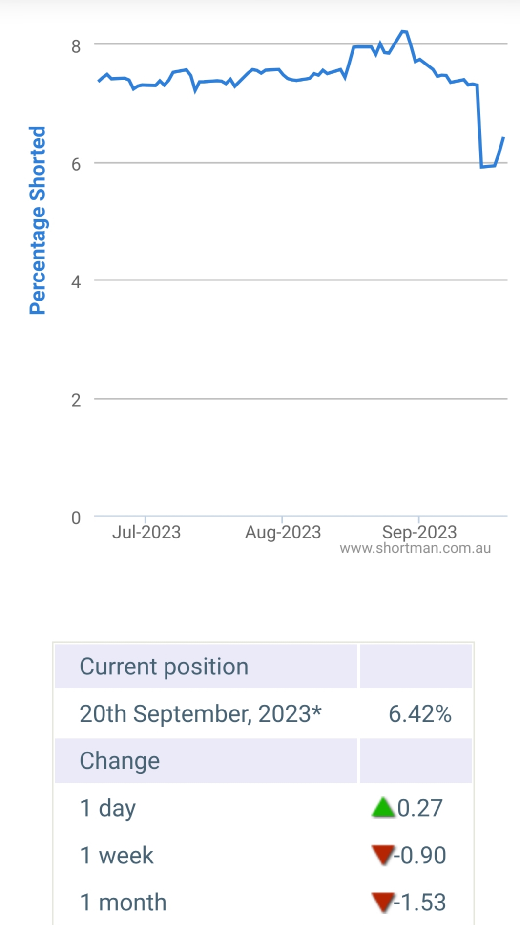 They have covered significantly in the last few weeks (~20%) and at great profit, but why is there an uptick in shorts, at a time when their available "infantry" (or ability to borrow shares) is being diminished, by our expulsion from the ASX200 and the associated institutional sell down??..